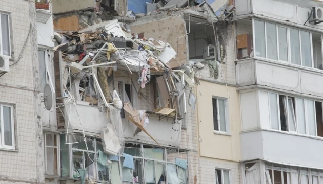 Напомним, взрыв в шестом подъезде дома в Дарницком районе Киева прогремел 21 июня в 10.00. Разрушены перекрытия четырех этажей, 40 квартир повреждено.