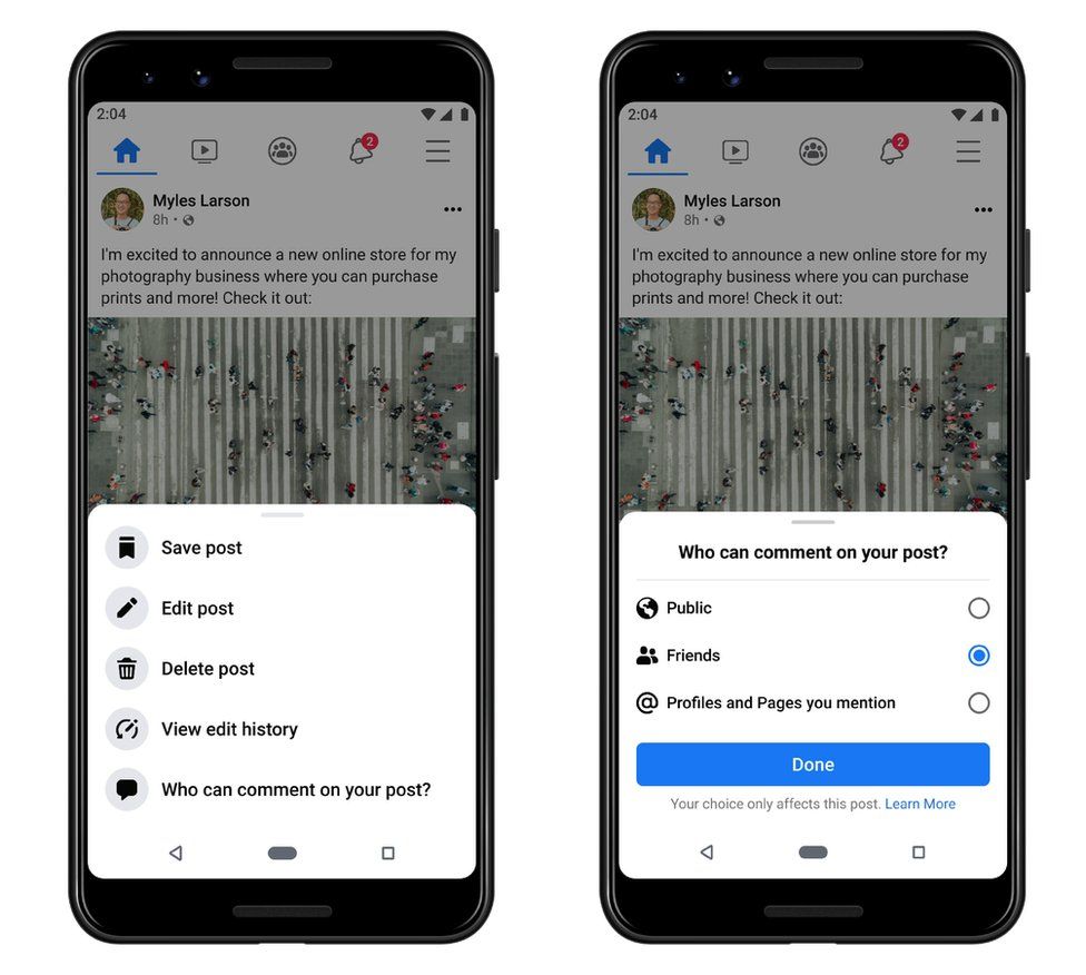 Facebook додає нові функції до стрічки новин користувачів, зокрема дозволяє їм обмежувати коментарі до своїх публікацій друзям або навіть конкретним людям, повідомляє видавництво BBC News.